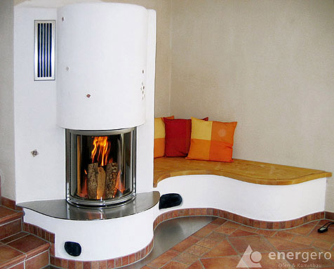 Der Heizeffekt setzt sich zusammen aus der Warmluftabgabe und der Strahlungswärme, die von der Glasscheibe des Kamins abgegeben wird. Ein Kamin wird also nur gelegentlich gebraucht, wobei der Benutzer in erster Linie das Ambiente des offenen Feuers wünscht.